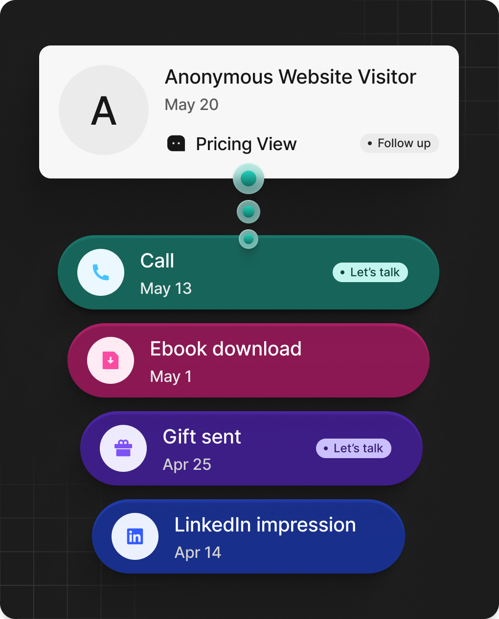 See every interaction in one view, from first touch to close. Understand how buyers actually move through stages, with full context and time-stamped detail.