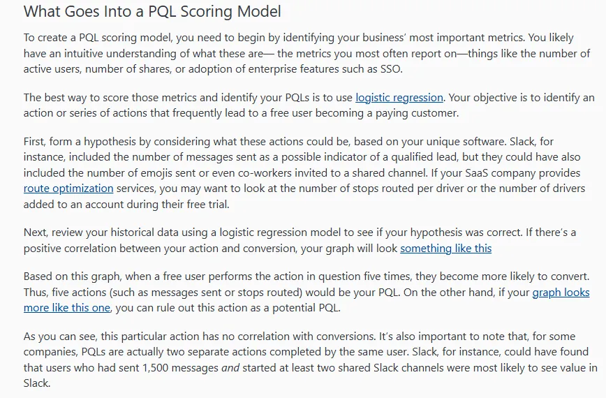 - Use AI tools to group PQLs by what they need next (technical users get engineering help, decision makers get ROI conversations)