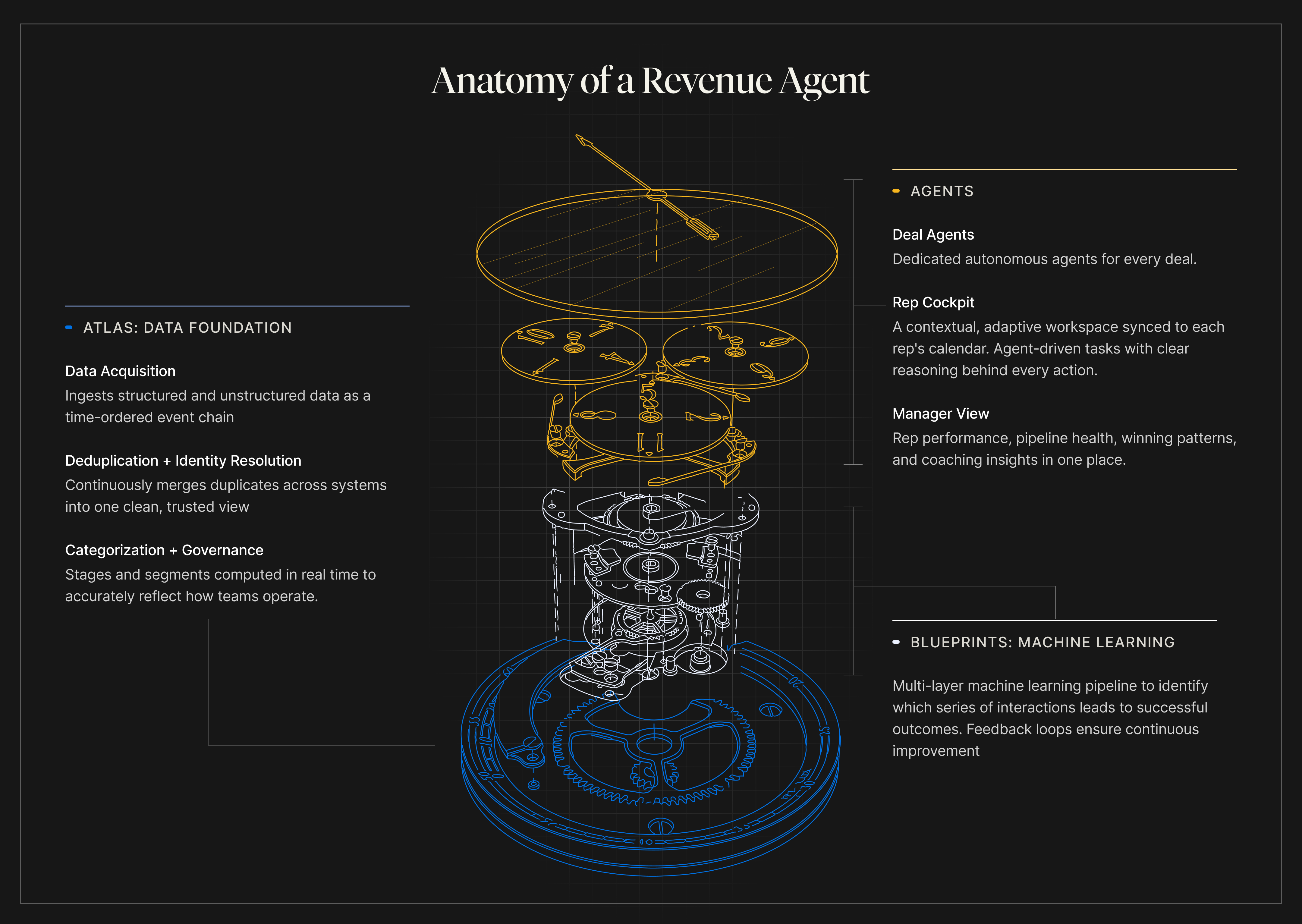 A “blueprint” layer sits on top of the event chain and reverse-engineers the human judgment your best reps and managers have been making for years.