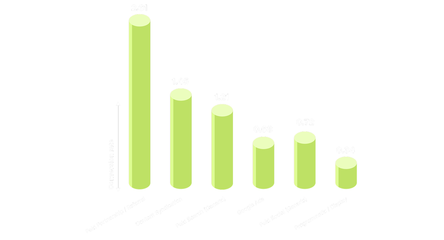 Google Ads underperforms here (7.3%), suggesting that buyers prefer formats that allow deeper engagement before engaging sales.