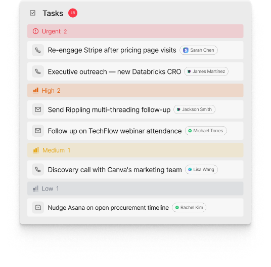 Revenue Agents are AI Agents that execute your revenue process at scale. They monitor every live deal against the patterns that have historically won, identify where deals deviate from the optimal path, execute autonomously, and loop in your reps when they need to take action.