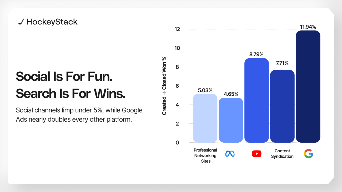 This reflects what we consistently see in HockeyStack’s attribution data:
