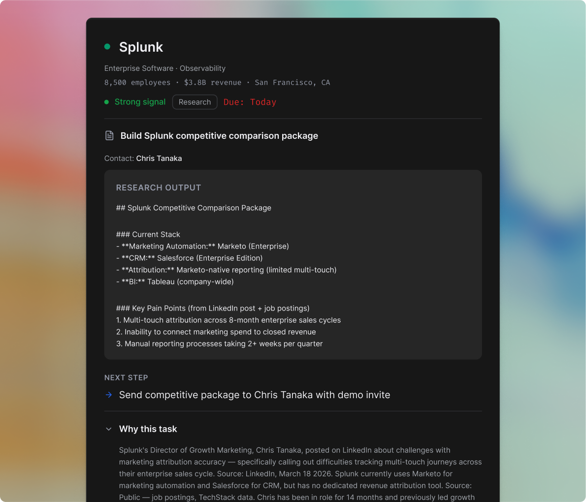 Many successful revenue teams have built parts of it internally. Most internal builds focus on narrow use cases like research summaries, account plans, and meeting prep.