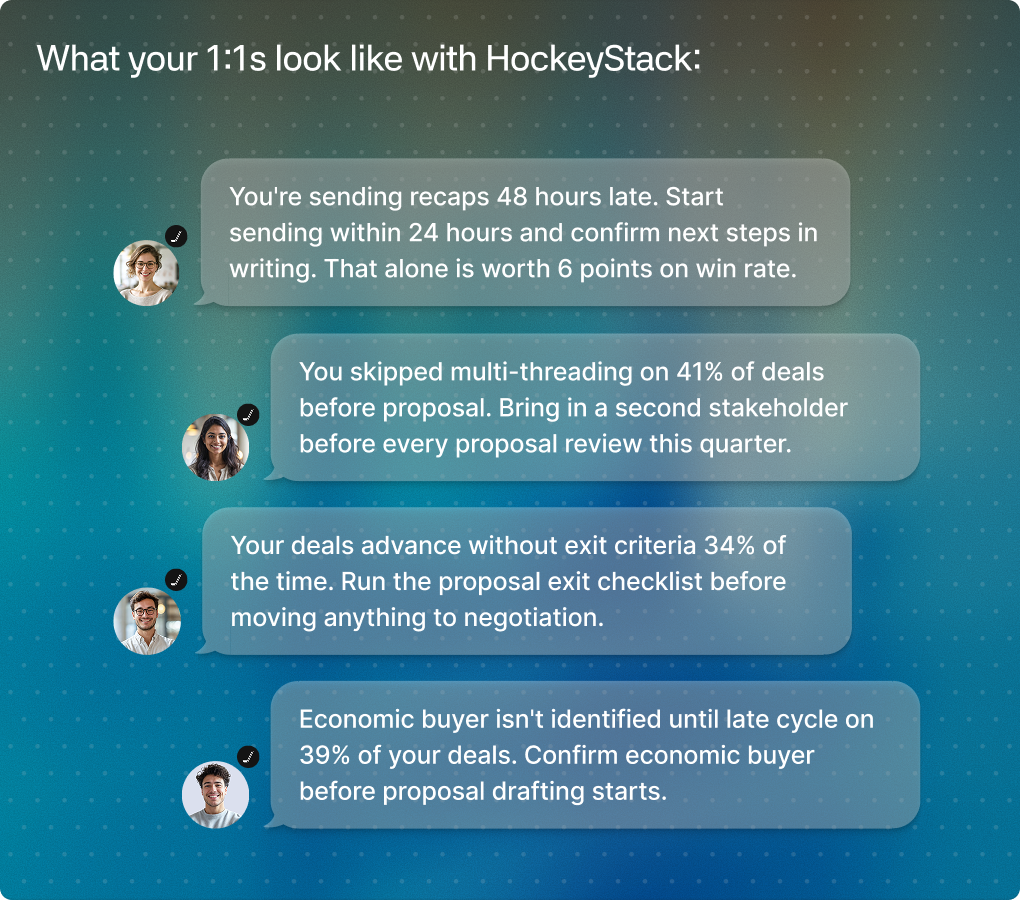 HockeyStack encodes your winning process, deploys it across every rep, and shows managers exactly where to coach.