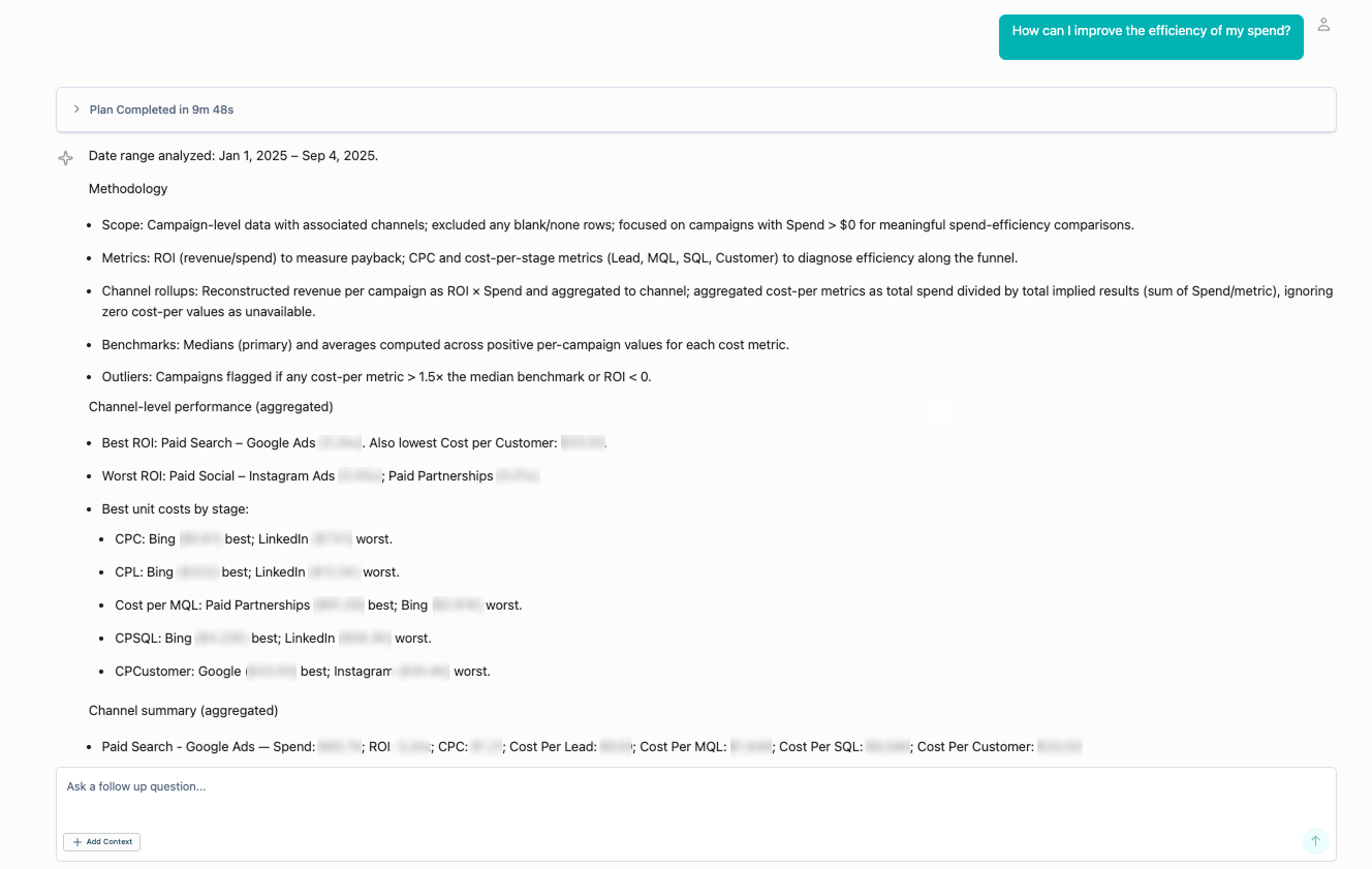 - Optimized budget allocation, as insights guided spend toward campaigns with stronger ROI